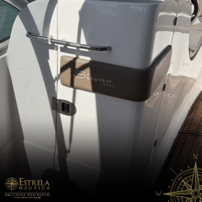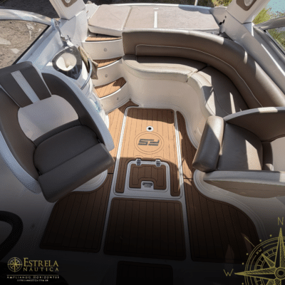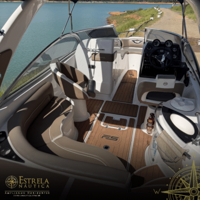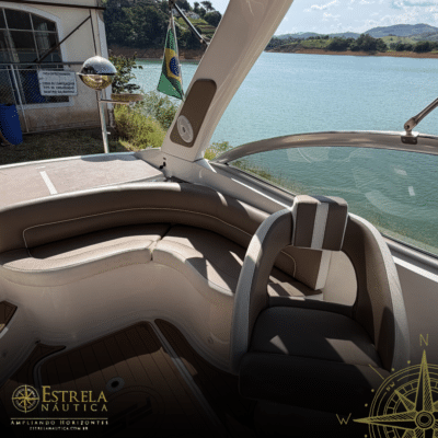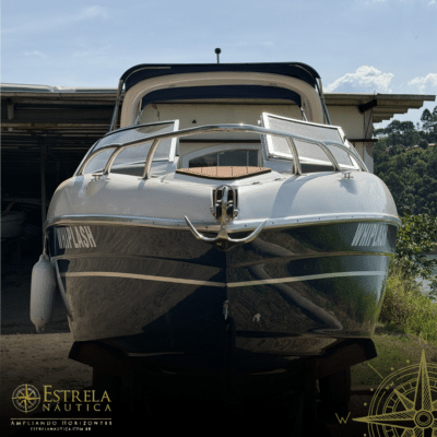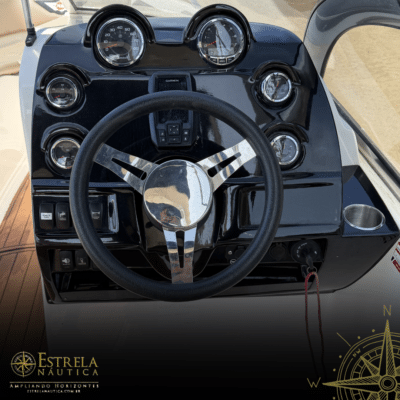 Diferenciais: Targa de fibra invertida, solário de popa, bar/geleira no cockpit